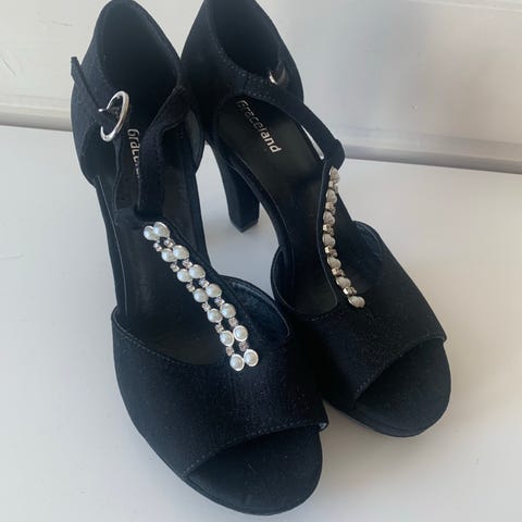 Pumps , sko fra ALDO i størrelse 36. Skoene har høye hæler og platåsåle. Overdelen har dyreprint med kombinasjon av sebra- og slangelignende mønster i hovedsakelig svart, hvitt og gultoner. Åpen tå og snøring rundt ankelen.