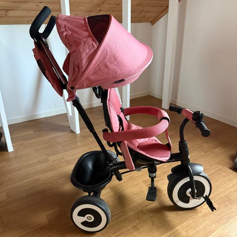 2-i-1 tricycle barnevogn, dreibart sete, sammenleggbar kalesje, rosa, ECOTOYS