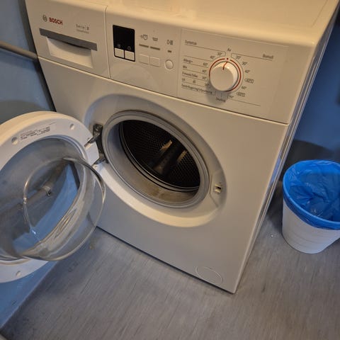Bosch frontmatet vaskemaskin i hvit utførelse. Maskinen har frontåpning med stort glasslokk og betjeningspanel på toppen. Egner seg til klesvask i husholdning. Vi har vært veldig fornøyd, fungerer utmerket, jevnlig renset/ vedlikeholdt. Må hentes. Selges nå da vi har fått ny.