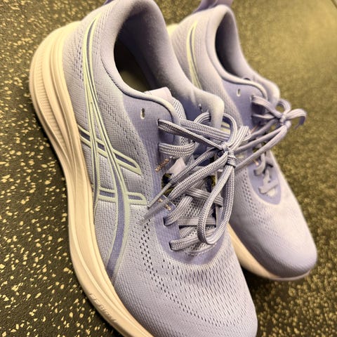 Topo Athletic Aura løpesko i størrelse 40. Modellen er en nøytral løpesko med 5 mm dropp, som egner seg til løping på vei og harde underlag. Overdelen er i pustende tekstil i lys lilla/rosa nyanser, med snøring for justerbar passform. Mellomsålen har demping tilpasset løping, og yttersålen har gummipartier for grep og slitestyrke. Skoene passer til løping og annen lett trening der det er behov for løpesko med demping.