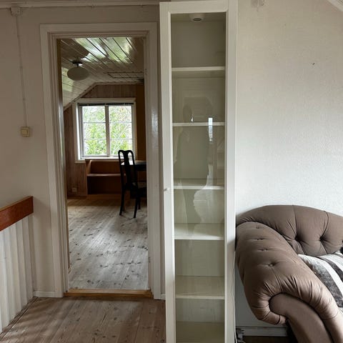 Hyllen er stødig og i god stand, men den har noen riper på den ene ytterveggen (se siste bilde) og derfor selges billig. Riper påvirker ikke bruken, og vil ikke synes dersom denne siden plasseres inntil en vegg eller et annet møbel. Resten av hyllen er pen men minimalt skader.