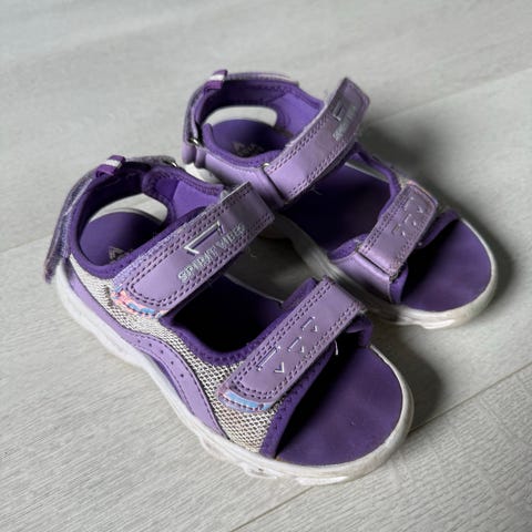 Viking sandaler for barn i størrelse 22. Modellen er unisex og kommer i lilla med lyse detaljer. Åpen sandal med justerbare borrelåsstropper over fot og rundt ankel for god tilpasning. Såle med mønster for bedre grep. Egnet til bruk i hverdagen og til utelek i varmere vær.