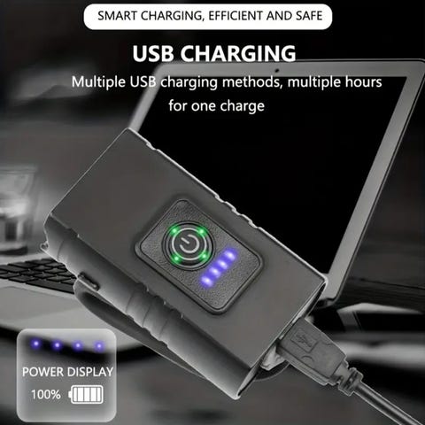 Grunda hodelykt med 2stk 2400mAh Varta ladebatterier sakteladet fulle.