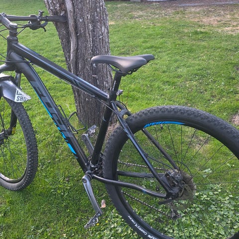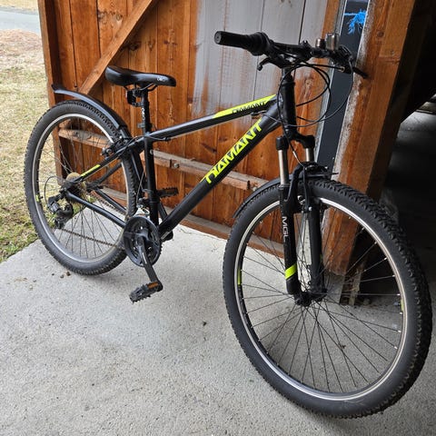 Mountain’s bike med dempet forgaffel og skivebremser.