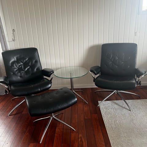Ekornes Stressless lenestoler med pall, selges samlet.