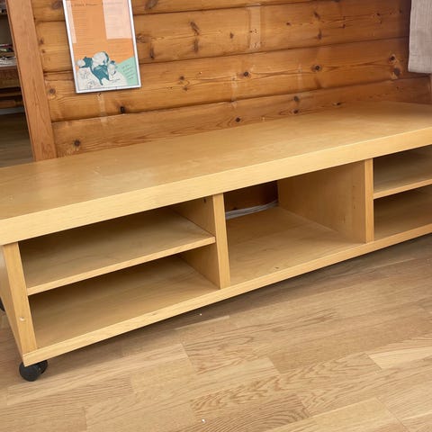 Kasse brukt til transport. 115 cm x 65 cm bredde/lengde og 23 cm i høyden. Hentes nærme Ensjø torg. Bor i 1 etasje.