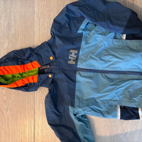 Skalljakke fra Helly Hansen i størrelse 122. Normalt brukt, liten rift på det ene ermet - se bilde. Ingen andre anmerkninger og er klar til å brukes av 1 barn til, selges billig nå som den har blitt for liten her 😃
