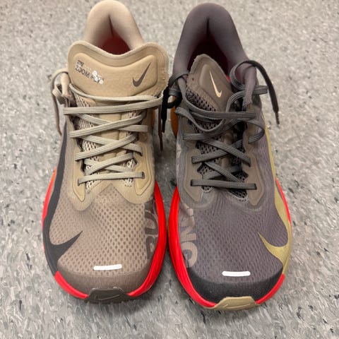 Nike løpesko i størrelse 42. Skoene er i grå og hvit farge med snøring foran. Overdelen ser ut til å være en kombinasjon av mesh og syntetisk materiale, med forsterkninger i front og hæl. Sålen er i skum/gummi som er typisk for løpesko, egnet for løping og annen trening på asfalt eller tredemølle. Passer til bruk som løpesko eller til hverdagsbruk der man ønsker en lett og komfortabel joggesko.