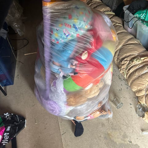 Selger en pose med barbier, klær, sko og div ting som er tilhørende.