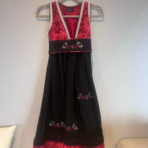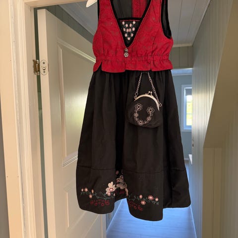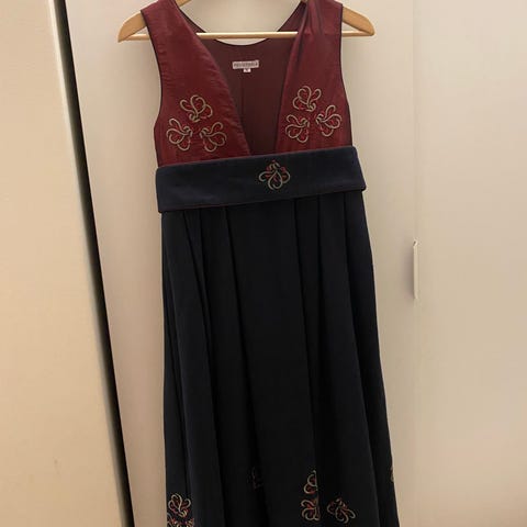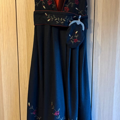 Nydelig og veldig pent brukt mørkeblå festdrakt/bunad i mykt ullstoff til jenter fra norske Pascal i str 10/140. Festdrakten har justerbart midjebelte som gjør at den er enkel à ta inn og ut. Stakken har to legg som gjør at denne enkelt kan justeres (ca. 10 cm) og kan dermed brukes over lengre tid. (Bunadsveske ny pris kr 699 følger med). Ny pris festdrakt 1999.