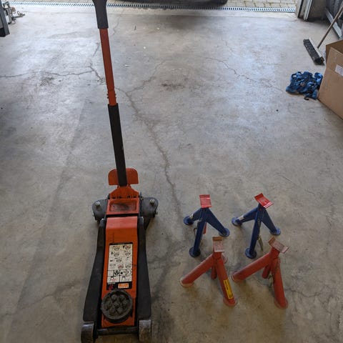 Kraftig 3 tonn garasjejekk med store terrenghjul. Laget for bruk på underlag hvor vanlige jekker ikke fungerer.