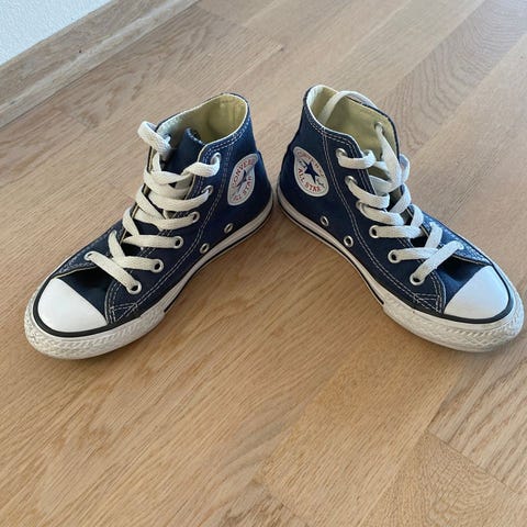 Nye ubrukte Converse, ligget i en eske. Ser nå at ene sålen er gulere enn den andre, se bildene. Datteren min rakk aldri bruke disse. Ny pris: 799.