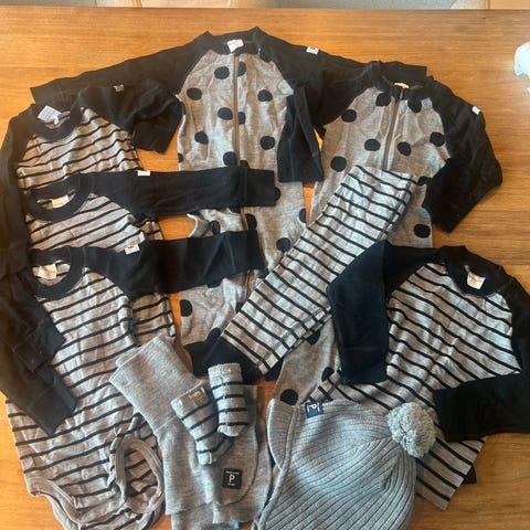 Ubrukt og fresht ullsett med lappene fortsatt på. Størrelse 74/80 dvs kan brukes lenge (6-12 mnd).