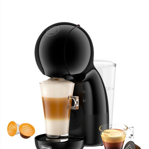Dolce Gusto kapselmaskin i hvit og svart utførelse. Maskinen bruker kapsler fra Nescafé Dolce Gusto-systemet for tilberedning av varme drikker. Den har plass til kopp i front og håndtak på toppen for enkel håndtering. Egnet for bruk på kjøkken eller kontor der man ønsker enkel tilberedning av kaffe og andre kapseldrikker.