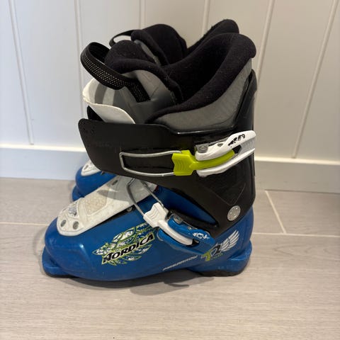 Barne skisko i blå farge med justerbar lengde 180–195 mm (235 mm yttersåle). Greie barnesko som sitter godt. Lave og myke for små alpinister.