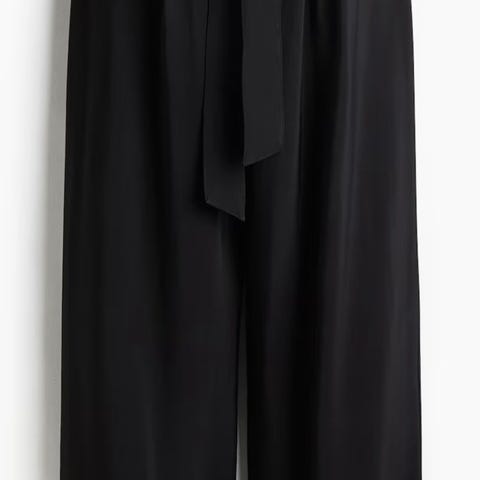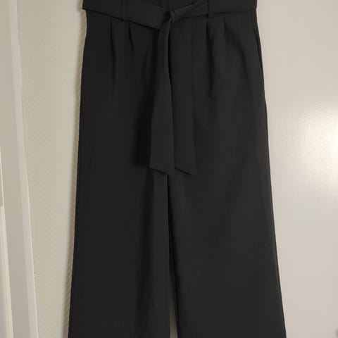 Svart bukse med høyt liv og vide ben fra Won Hundred i størrelse 36. Livvidde er 78 cm, skrittlengde 35 cm og indre benlengde 79 cm. Folder og lommer i front. Laget av en blanding av viskose og polyamid. Pent brukt uten flekker eller skader.
