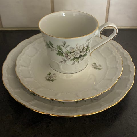 Walbrzych porselensservise hvit med gullkant