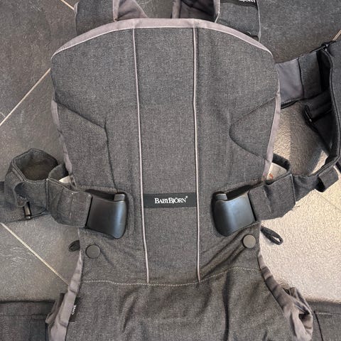 BabyBjörn Baby Carrier Mini bæreselle i mørk grå farge. Modellen er en kompakt og lett bæreselle for bæring av baby på mage. Selen har justerbare stropper og spenner for tilpasning til den som bærer. Åpninger til ben og armer er formet for å gi støtte til babyens kropp. Egnet til bruk fra nyfødt, avhengig av barnets vekt og lengde i henhold til produsentens anvisninger på festet bruksanvisning.