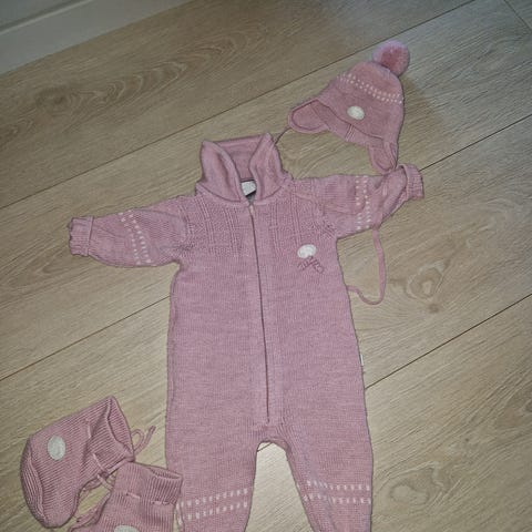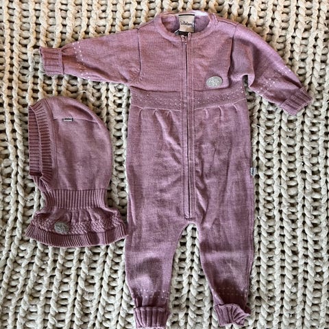 Lillelam ulldress og balaklava i størrelse 68 i den nydeligste fargen, lyng.