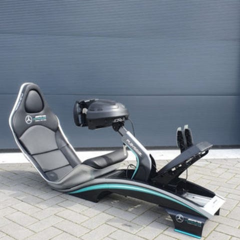 Playseat Formel 1 racingsete for simracing. Setet har integrert ramme for montering av ratt og pedaler, samt justerbar seteposisjon. Designet med Mercedes-AMG Petronas-logo og farger.