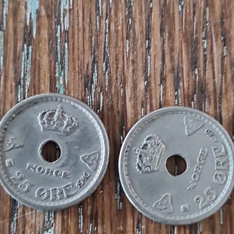 Norge 25 øre mynt fra 1944. Myn ten er rund og laget i metall med pålydende verdi 25 øre. Årstallet 1944 står på forsiden sammen med valørangivelsen. Baksiden har riksvåpenmotiv og teksten «Norge». Egner seg som samleobjekt for mynter fra Norge og andre verdenskrig-perioden.