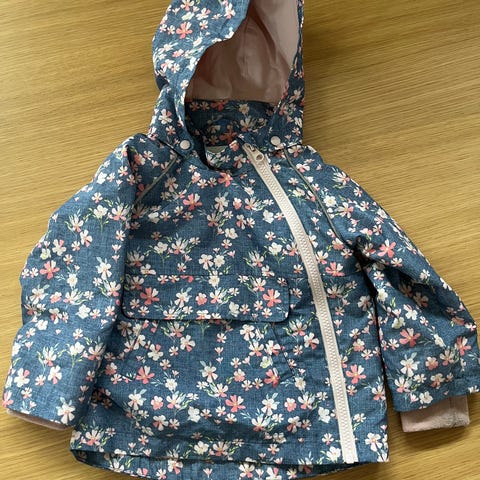 Meget pent brukt delikat jakke fra name it. Den er helt strøken med en kreativ glidelåsplassering. Stor lomme på magen. Har en fin avslutning på ermene ved håndleddet.
