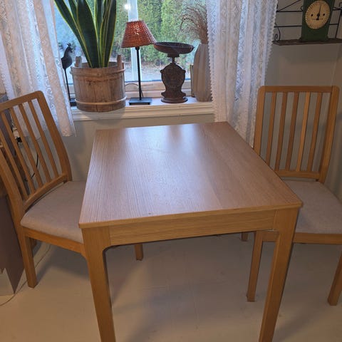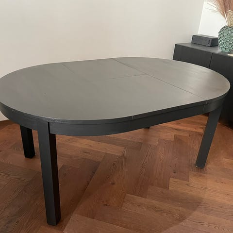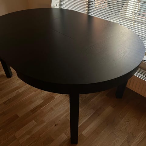 Ingatorp bord (Ikea), lite brukt. Uttrekkbart til 155 cm - innebygd ekstra lem. Lett å utvide, ikke brukt i utvidet stilling. Fester på undersiden, tungt og meget solid bord.