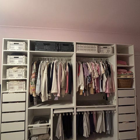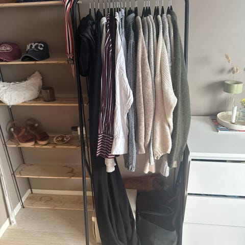 Fleksibelt system som kan settes sammen på nye måter og bygges på med mer. IKEA selger masse som passer sammen med dette. Genialt når mån ikke ønsker store garderobeskap. Funker i rom i alle høyder.