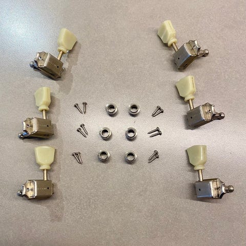 Stemmeskruer for akustisk gitar fortrinnsvis stålstrenger. Fin dekor på sidene, metall hode på stemmeskruene. For 6 strengs git