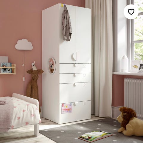 2 garderobeskap og 1 kommode. Pent brukt. Det er en skuffet som er litt ødelagt men forstatt kan brukes. Alle skuffer har gul knapper. Kan ikke demonteres, må hentes. Selger alt sammen.