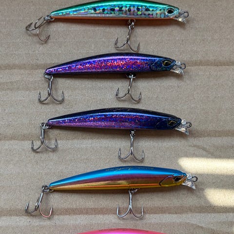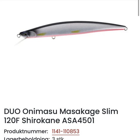 8 stk. Duo Terrif DC-7 Bullet selges samlet. De er 7,5cm lange og veier 10,2 gram. Det er 2 av hver i fargene Red Mullet, Aigo, Genkai Sardine og Waka Mullet. De er ubrukt og i orginalemballasje. Frakt tilkommer.