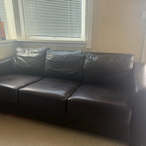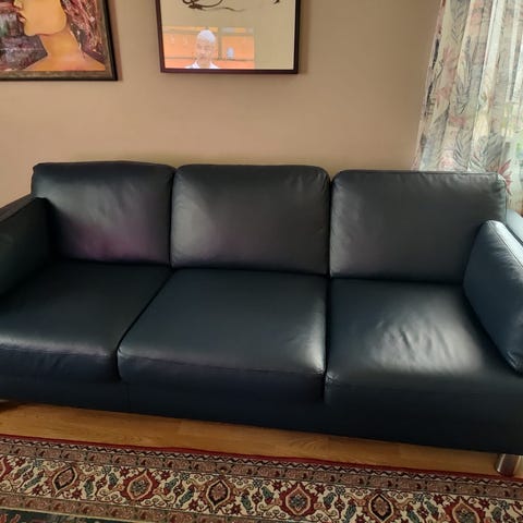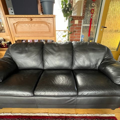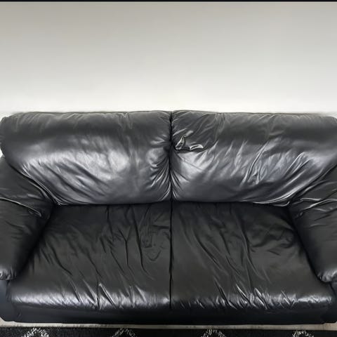 Godt brukt skinnsofa selges. Viktig å bemerke at det er uvisst hvilket merke/alder dette er da jeg fikk denne av noen andre for 6 år siden, men jeg kunne ikke velge å legge denne ut uten å krysse av på en designer så da det kom opp IKEA automatisk av AI så bare lot jeg det stå da jeg ikke kan huke av på «uvisst» eller «usikker».