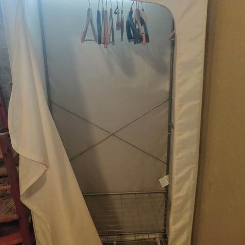 Veldig praktisk garderobeskap som kan brukes enten i entre eller soverom, til og med i bodet som oppbevaringshyller. 100% beskyttelse mot støv med støvtrekket på. Ingen skader eller slitasjer. Selges umontert med alle skruer. Super lett å monteres