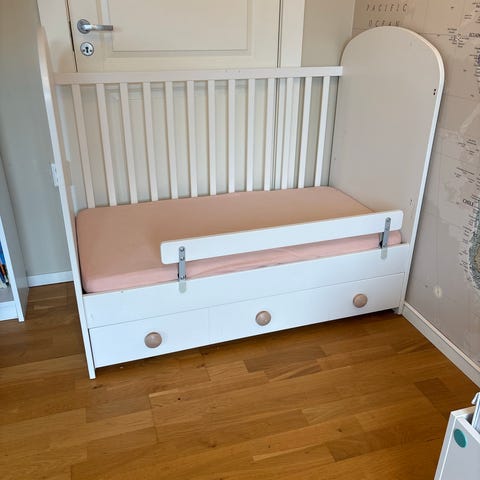 IKEA juniorseng hvit med sengehest og skuff