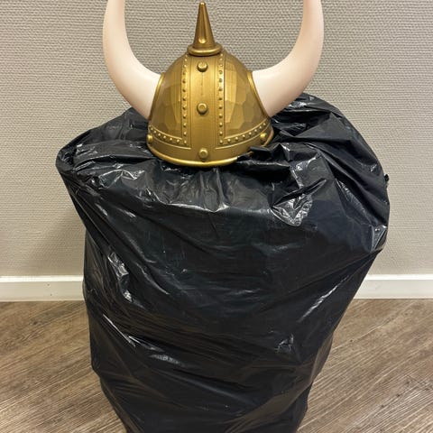 En sekk med vikinghjelmer (minst 15) og en sekk med oktober hatter (minst 20stk) Alt selges samlet