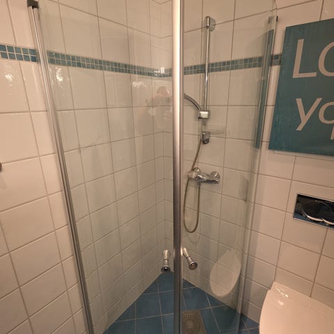 Dusjdører 90x90 i glass grunnet overgang til badekar.