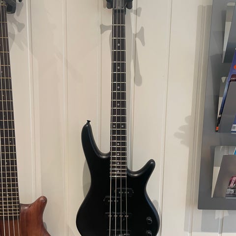 Selger en så godt som strøken japan Fernandes APB (tror jeg) 5-strenger. Sumask kropp, og aktiv elektronikk. Låter fint, med en tight H-streng.