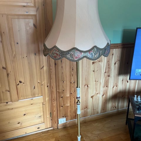 Stålampe med skjerm, 3 lyspærer, 1 «uplight» og 2 «downlight», med demper på ledning. (Pærer ikke inkl.)