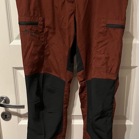Pinewood Outdoor Collection turbukse for dame i størrelse S/36. Buksen er rød med svarte forsterkede partier på knær og sete. Den har flere lommer, blant annet lårlommer med klaff og glidelåslomme foran. Justering med glidelås nederst på bena. Egnet som turbukse og fritidsbukse i skog og mark.