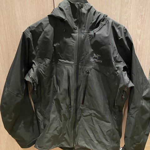 Stoffet på jakken er i god stand, men som vist på bildene har limet begynt å gå opp rundt hette og i ermene. Dette må limes eller sys. Utenom det er jakken i god stand og skal ha lang levetid.