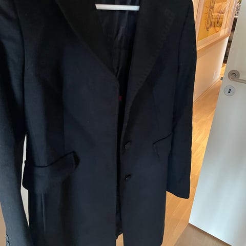 Max Mara kort, dobbeltspent pea-coat kombinerer en klassisk pea-coat-silhuett med viskose scuba jersey for et strukturert, polert lag som er ideelt for hverdagsbruk og overgangsvær. Viktige egenskaper: Svart | Viskose scuba jersey | Knappelukking | Welt-sidelommer | Kort pea-coat-silhuett | Dobbeltspent front | Bredt jakkeslag | Lange ermer med droppede skuldre | Klassisk konstruksjon.