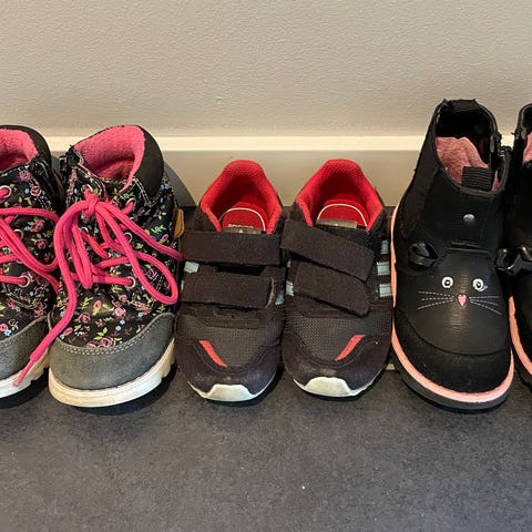 Ulike barnesko i størrelse 22. (Skoene til venstre i hovedbildet) og størrelse 23 (til høyre).