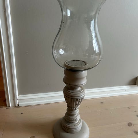 1 Lysestake i tre i brun farge. Klassisk, dreid design med rund fot og bred topp til plassering av lys. Egnet som bord- eller vindusdekorasjon i stue, gang eller andre oppholdsrom.