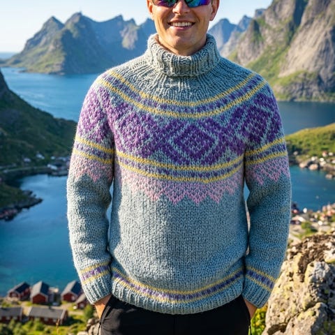 Bilder med genser i bruk er AI for å vise hvordan den sitter på.