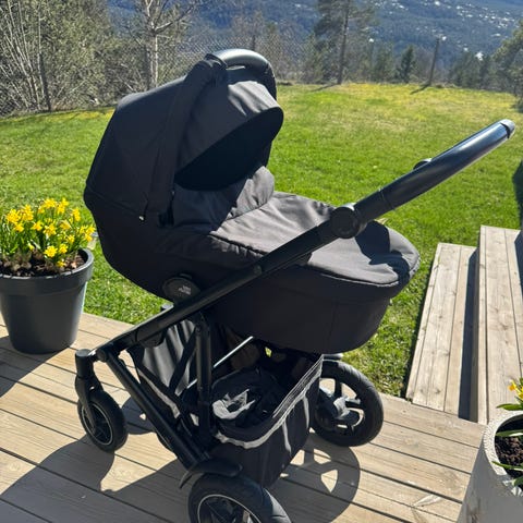 Følger med originalt regntrekk, bilstoladaptere, koppholder og solparasoll. Trekk og seler følger med slik at bagdel gjøres om til sittedel.