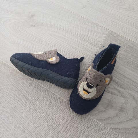 Superfit ulltøfler for barn i størrelse 23. Tøflene er i blå farge med dyremotiv foran og har en grovmønstret såle i gummi for godt grep. Unisex-modell som passer både gutter og jenter, egnet som innesko eller tøfler i barnehage og hjem.