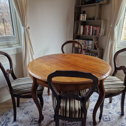 Gamle solide stoler i heltre – landlig / cottagecore stil / Chabby Chic