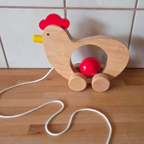 Dette er et populært aktivitetsleketøy for barn fra rundt 1 års alder, designet for å stimulere motoriske ferdigheter og gi visuell underholdning når baller (eller "egg") triller nedover spiralen.