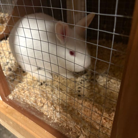 Svart kanin på 5 mnd gies bort,følger med 2 Etg bur,snill og trygg kosete kanin