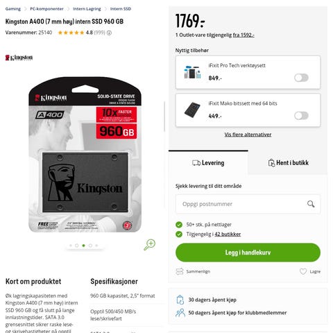 Frakt fra 19 kr + Trygg betaling 187 kr. Frakten er på tilbud – ordinær pris er 38 kr.